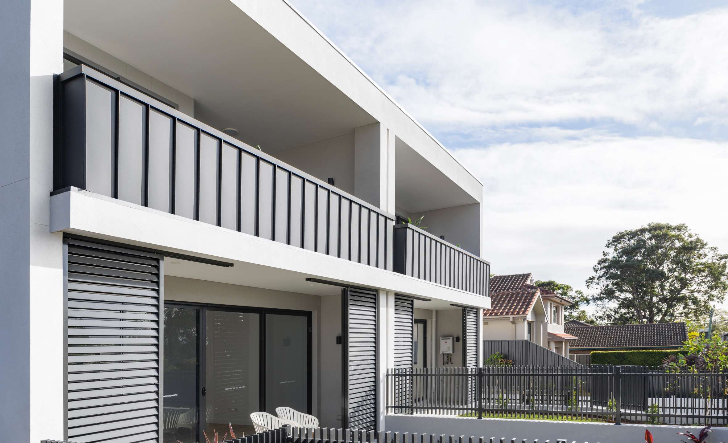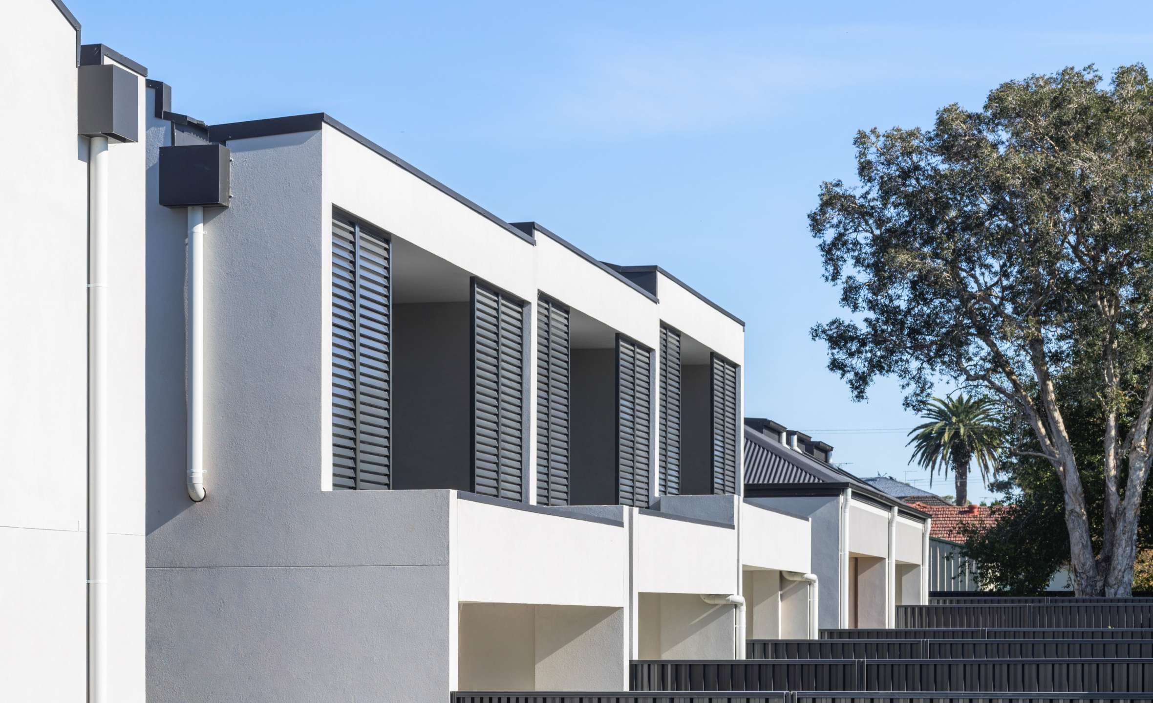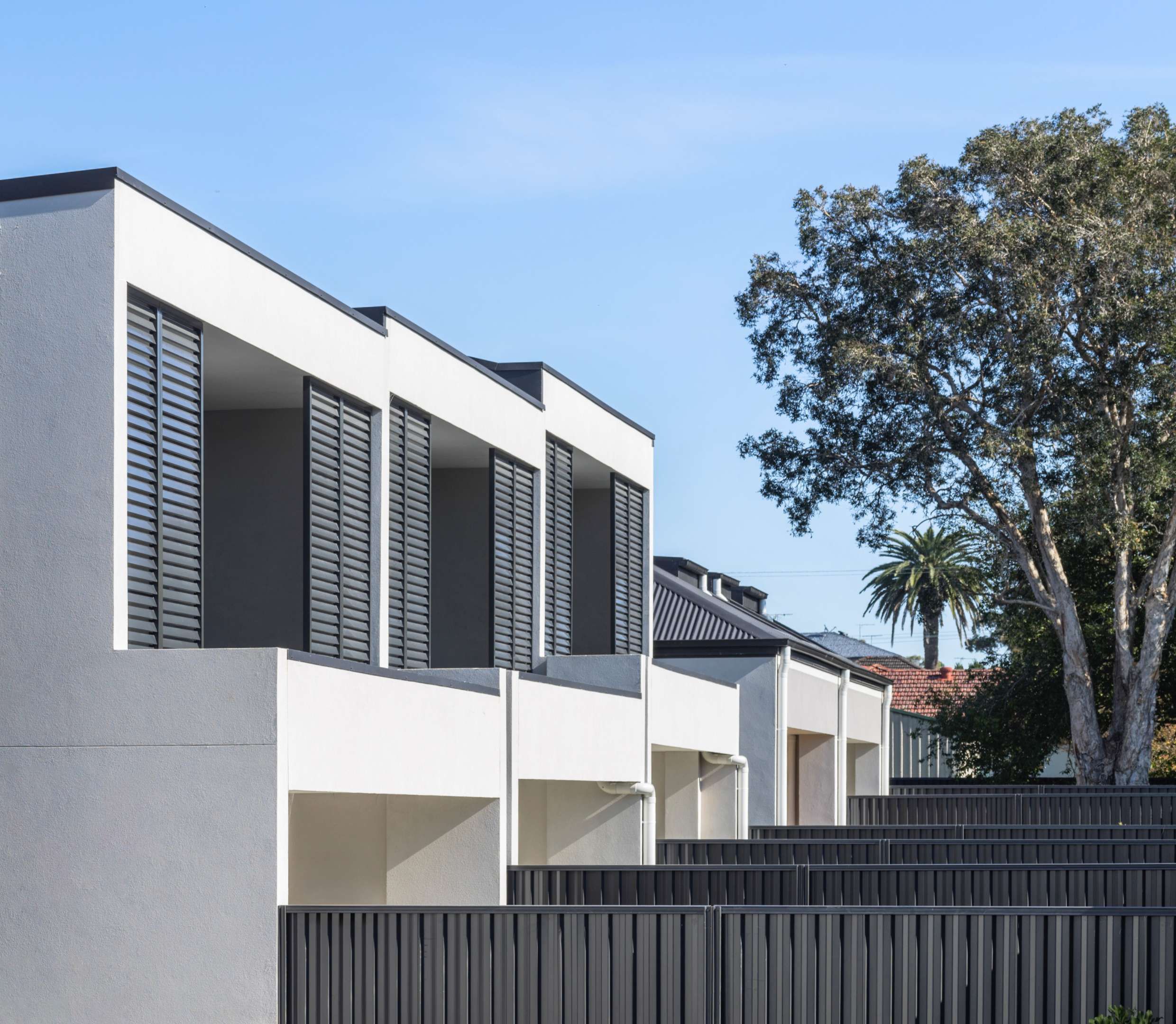Design & Construction of 8 premium terraces spanning three levels, single level basement parking and contemporary landscaping.